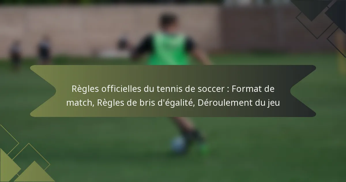 Le soccer tennis est un sport captivant où deux équipes s’affrontent sur un terrain divisé par un filet, utilisant un ballon de soccer en formats simples ou doubles. Le format du match comprend des règles de pointage et d’arbitrage spécifiques pour promouvoir le fair-play, tandis que les procédures de bris d’égalité garantissent un gagnant décisif par des méthodes telles que la mort subite. Comprendre le déroulement structuré du jeu, du service à la marque de points, est essentiel pour les joueurs afin d’améliorer leur expérience compétitive.