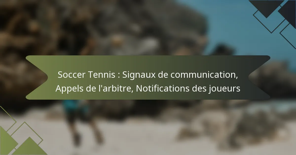 Les signaux de communication dans le soccer tennis sont essentiels pour un jeu efficace. Les arbitres utilisent des signaux manuels spécifiques pour indiquer des appels tels que les fautes, les points et les interruptions de jeu. Les joueurs sont censés être familiers avec ces signaux pour réagir de manière appropriée.